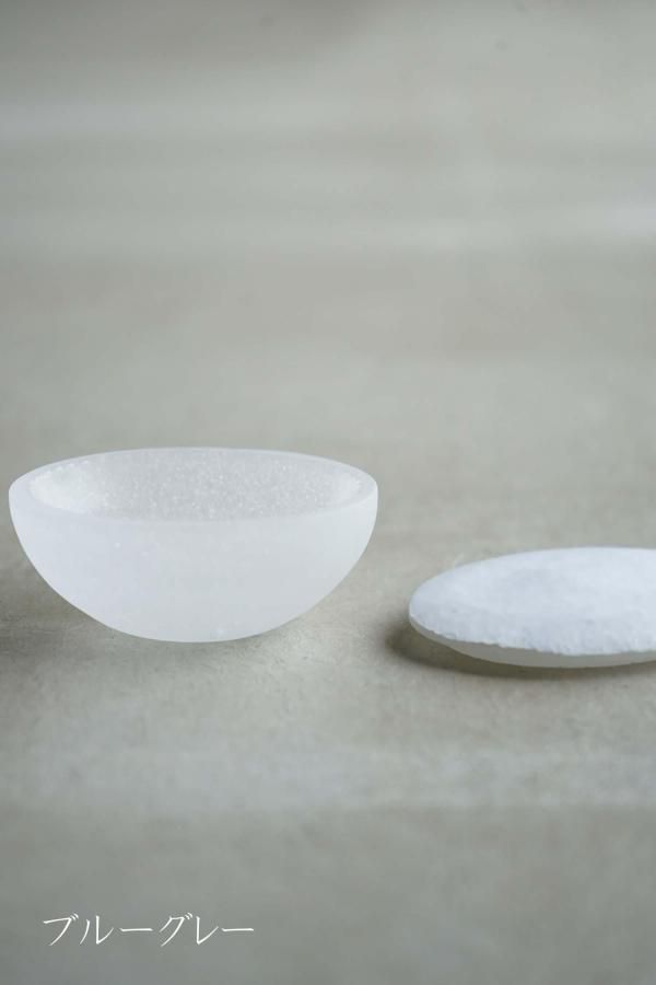 上の蓋部分は、型に色を入れた後、いくつかの大きさのガラス粒子を層にして焼成する、オープンモールドという技法で制作されています。