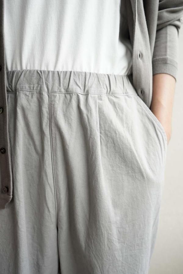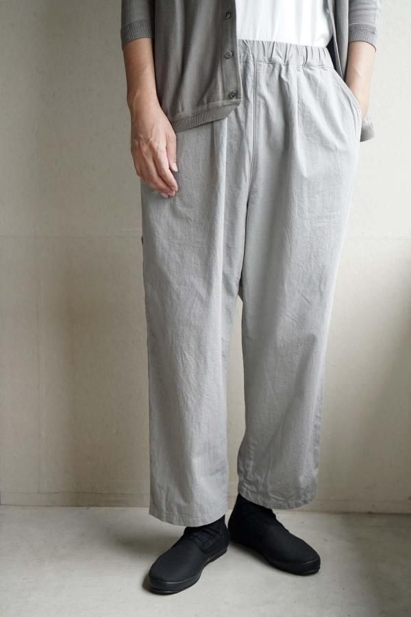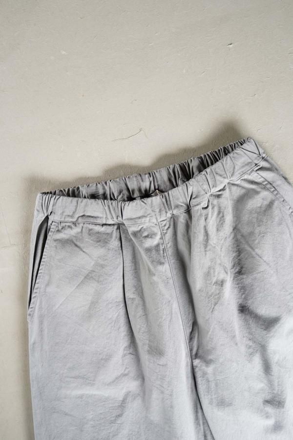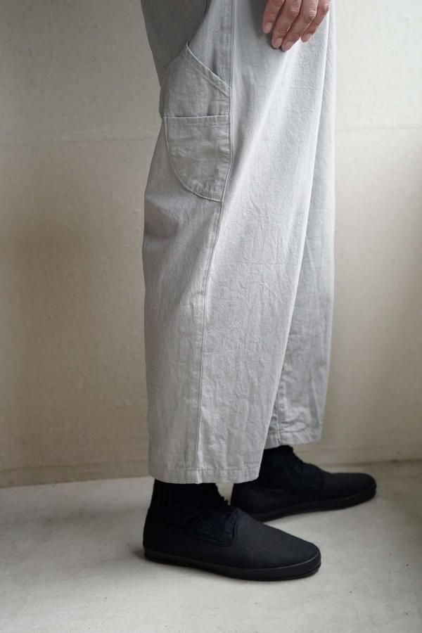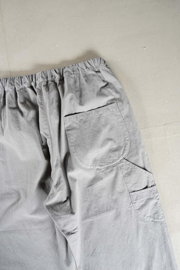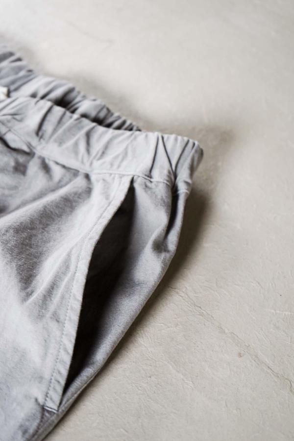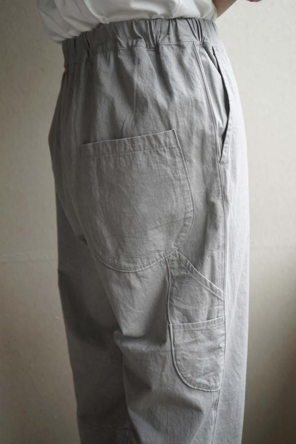 ウエストはゴムと紐を入れた仕様で、ペインターパンツをモチーフにしたサイドポケット、丸みのあるポケットが特徴。