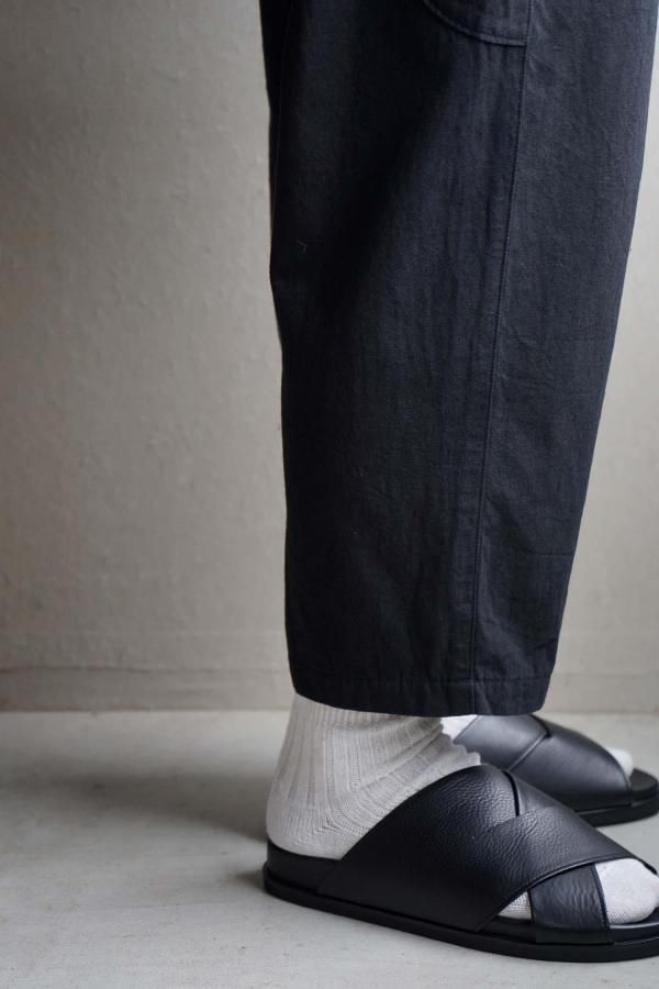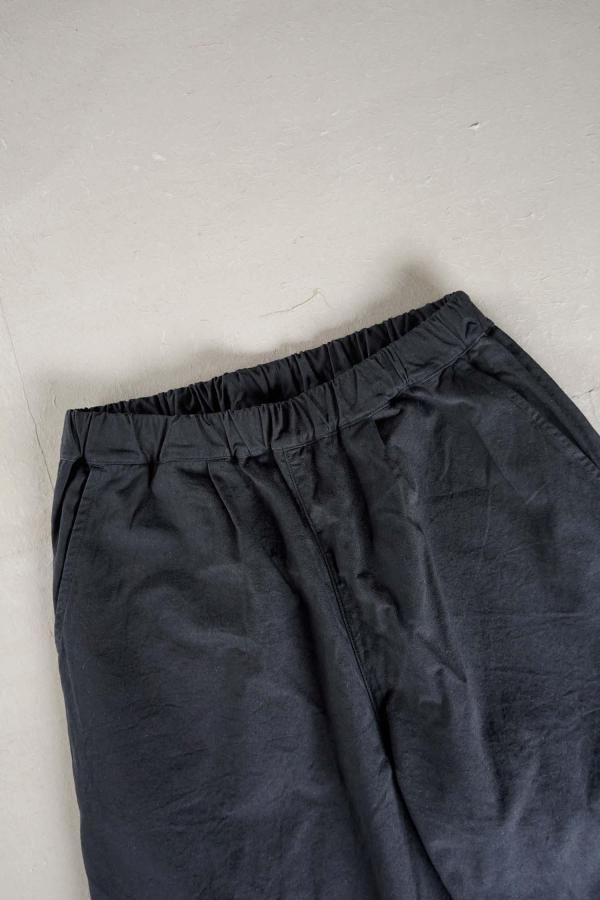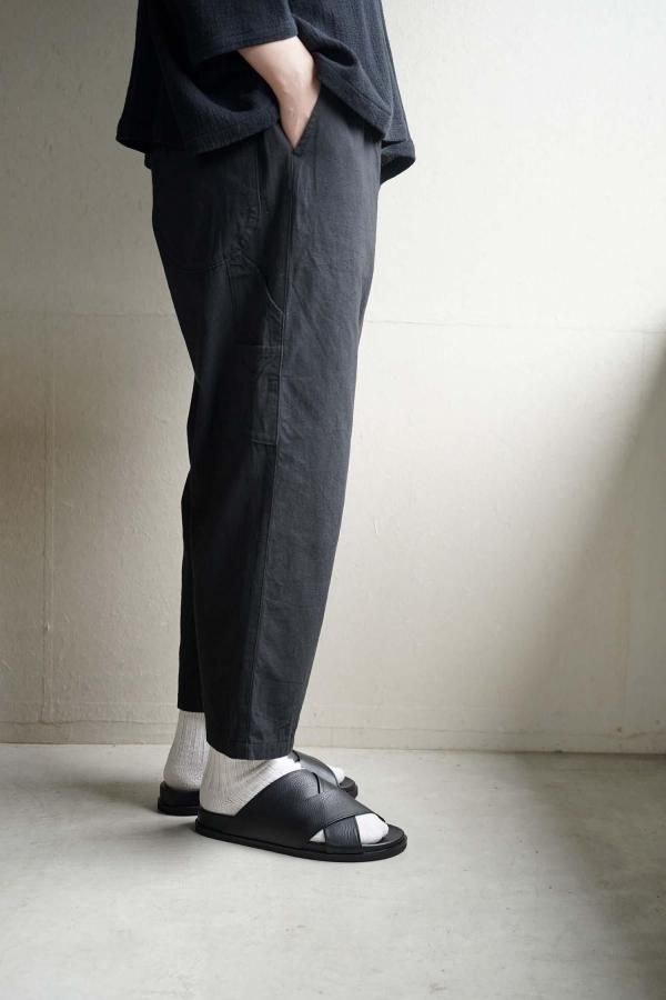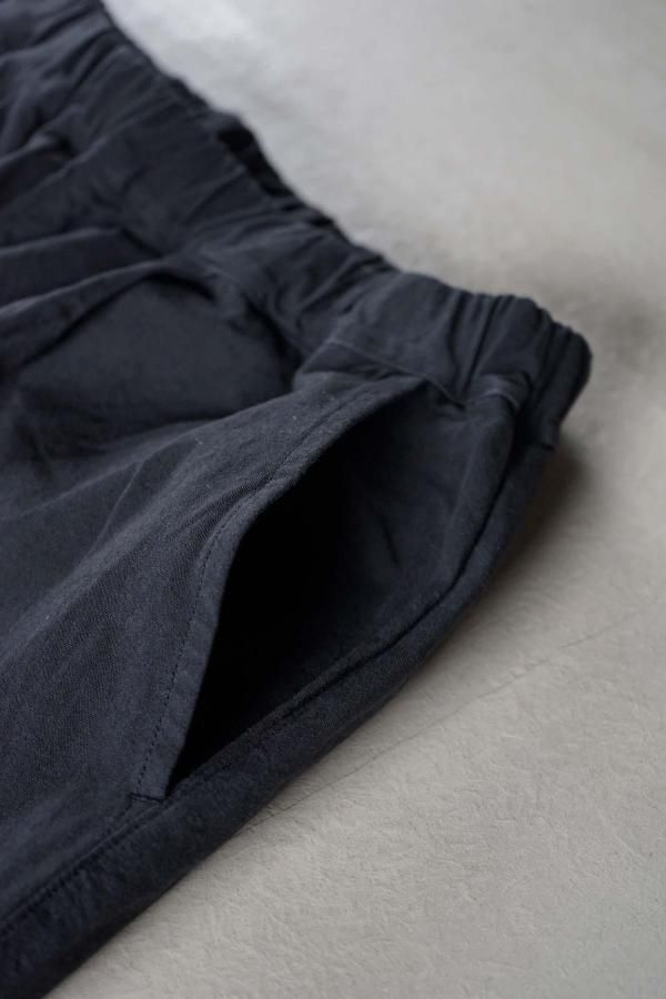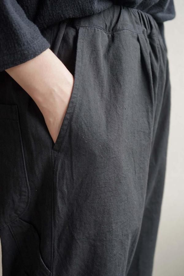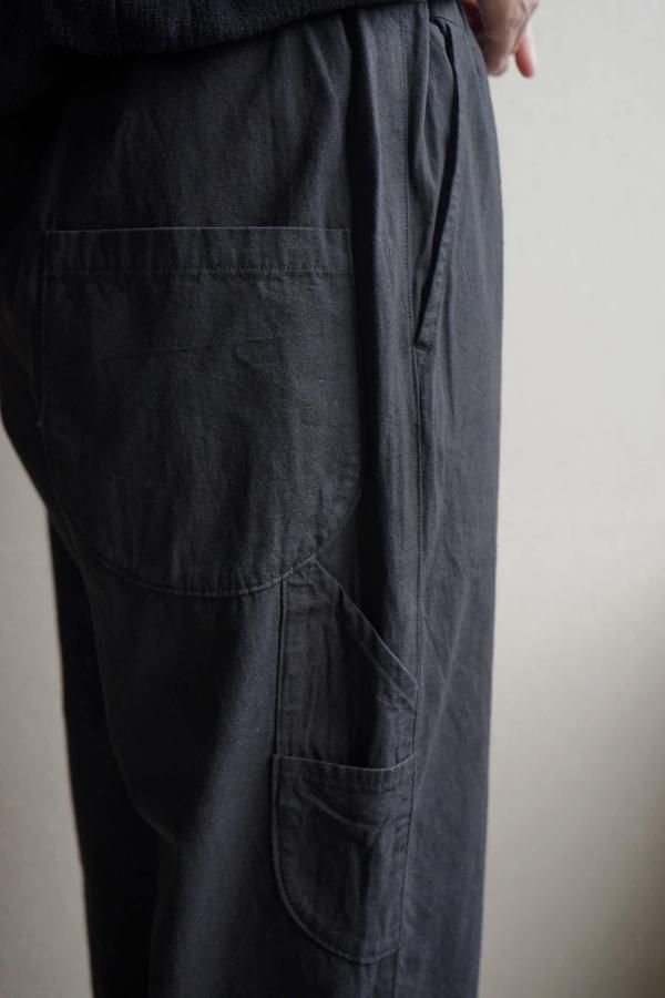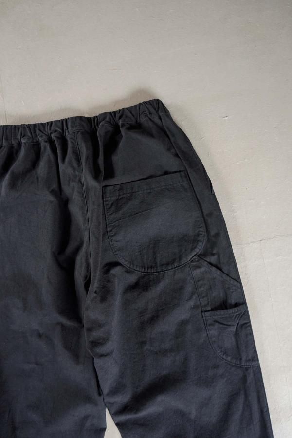 ウエストはゴムと紐を入れた仕様で、ペインターパンツをモチーフにしたサイドポケット、丸みのあるポケットが特徴。