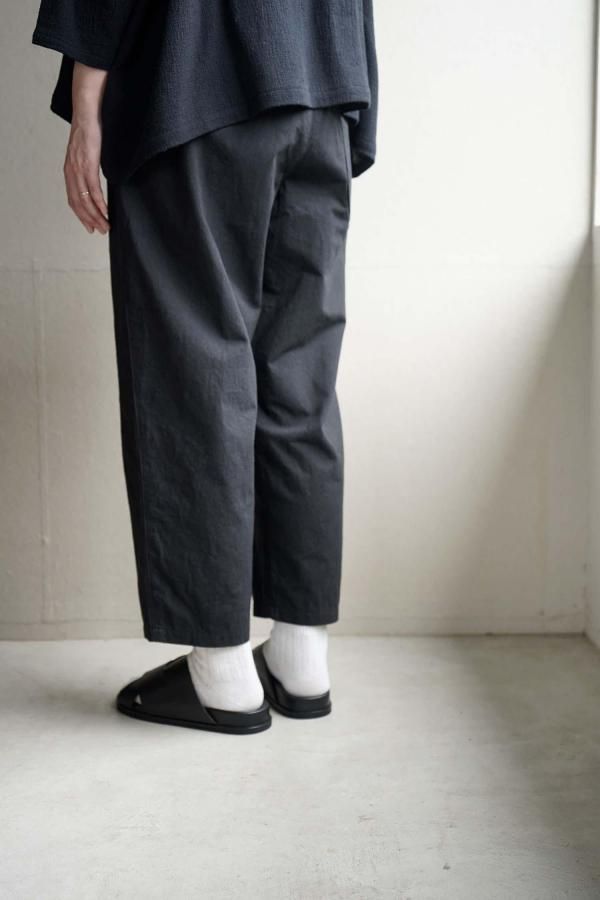 ボリューム感のあるシルエットながら、裾をテーパードさせることですっきりとした印象です。