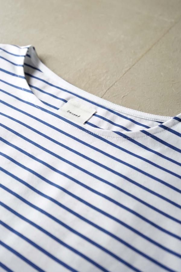 シンプルなボートネックの肩に、タックを入れた動きのあるデザイン。