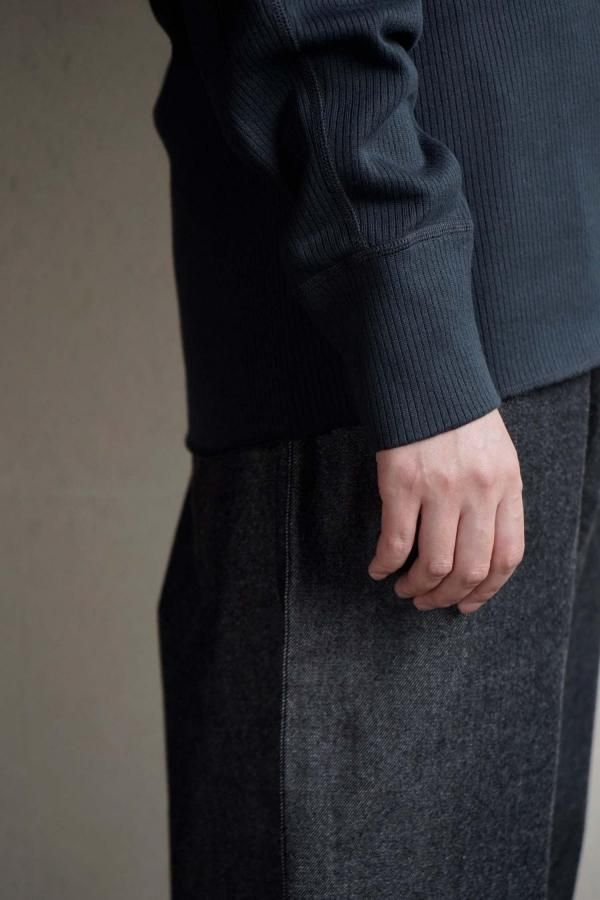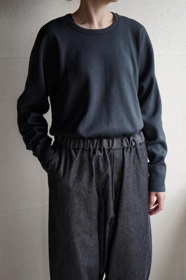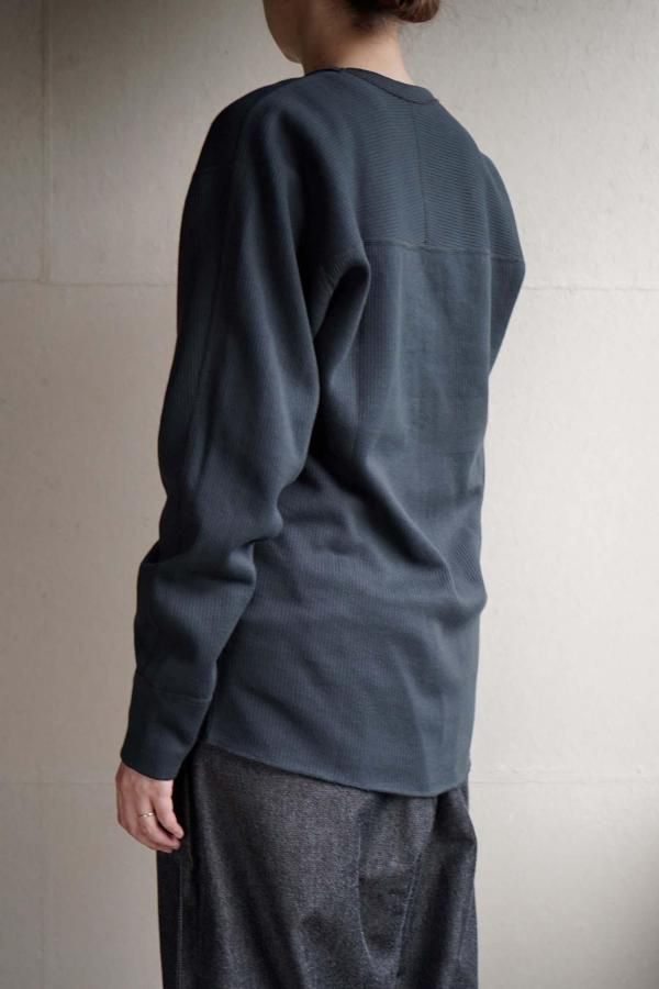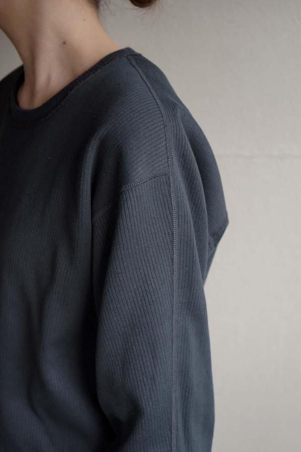 絹糸をつくる過程で出る屑繭を再紡績した絹紡紬糸とオーガニックコットンを使用したプルオーバー。