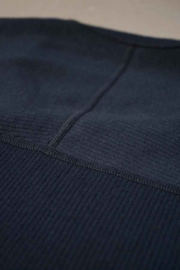 表面はコットン、裏面はシルクで、リブのような針抜きの二重組織で編み上げたオリジナル素材です。
