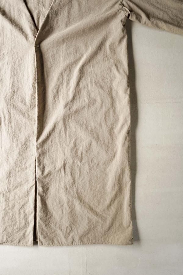 さらりとした薄手のナイロン生地を使用したロングコート。