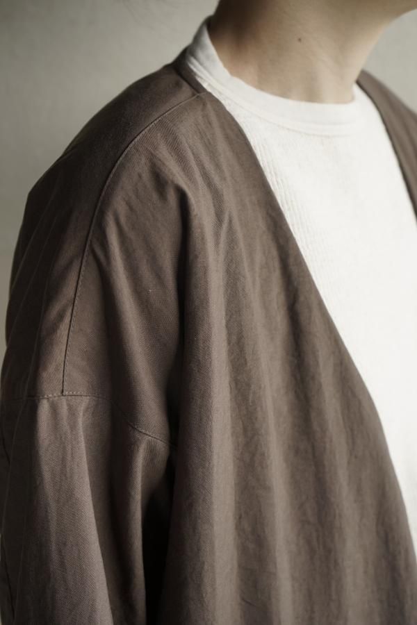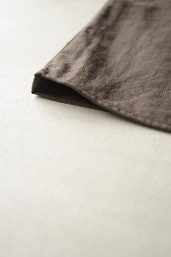 最低限の必要なステッチのみで縫製した一枚仕立てのシンプルなデザインで、袖口はスナップボタンによってシルエットを変化させることも。