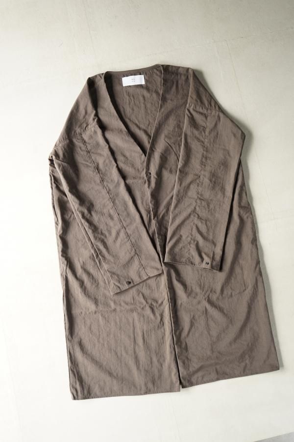 さらりとした薄手のナイロン生地を使用したロングコート。