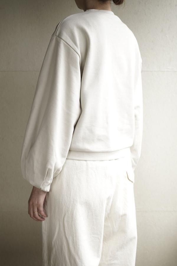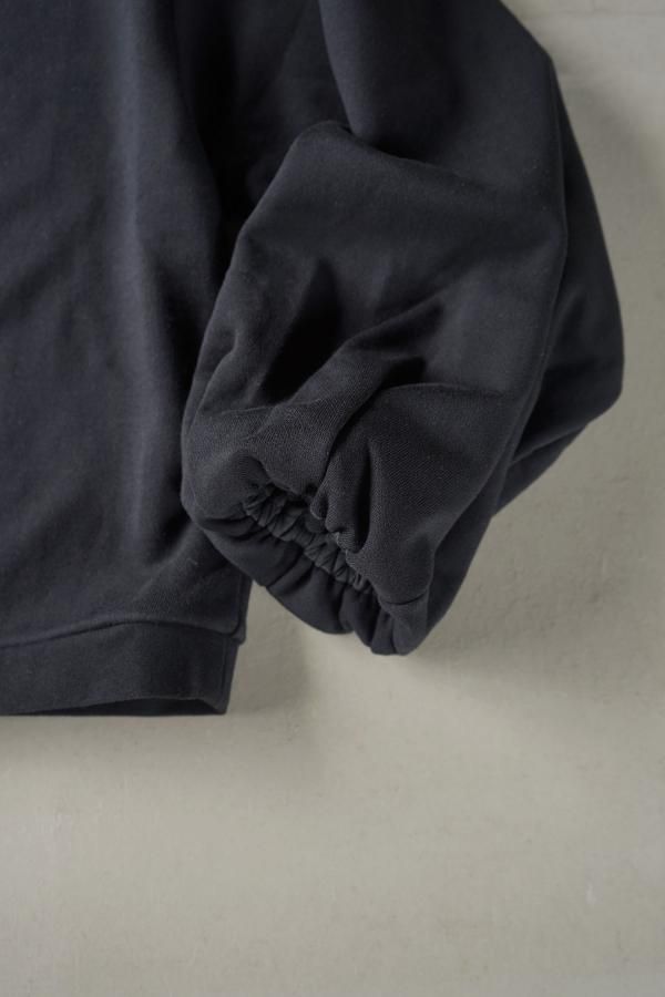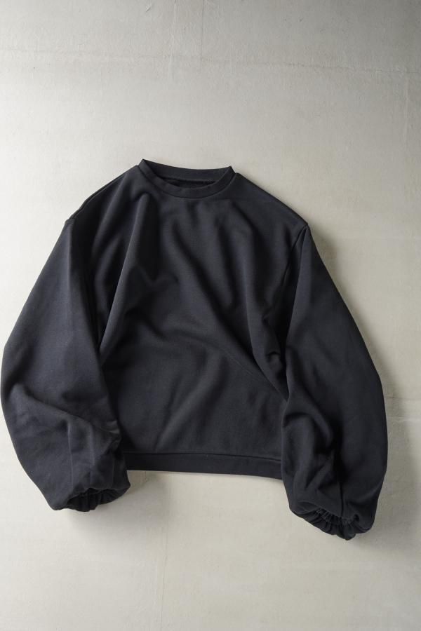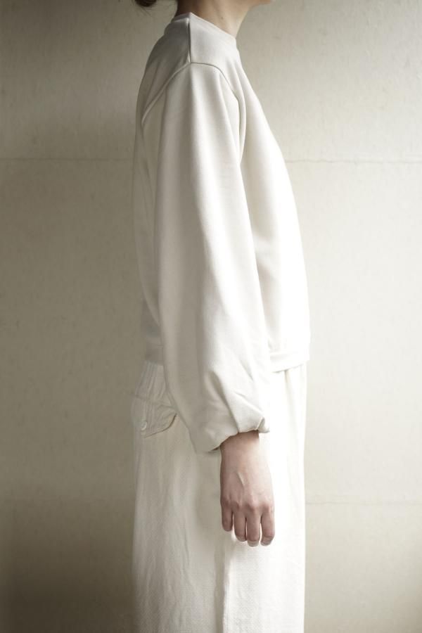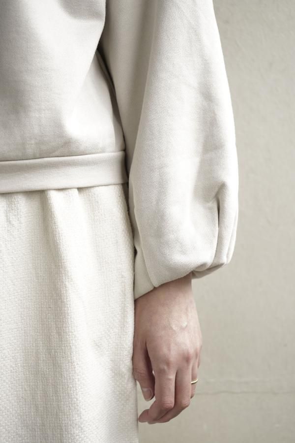 シンプルなクルーネックのデザインに、ギャザーを寄せたボリュームのある袖が印象的。