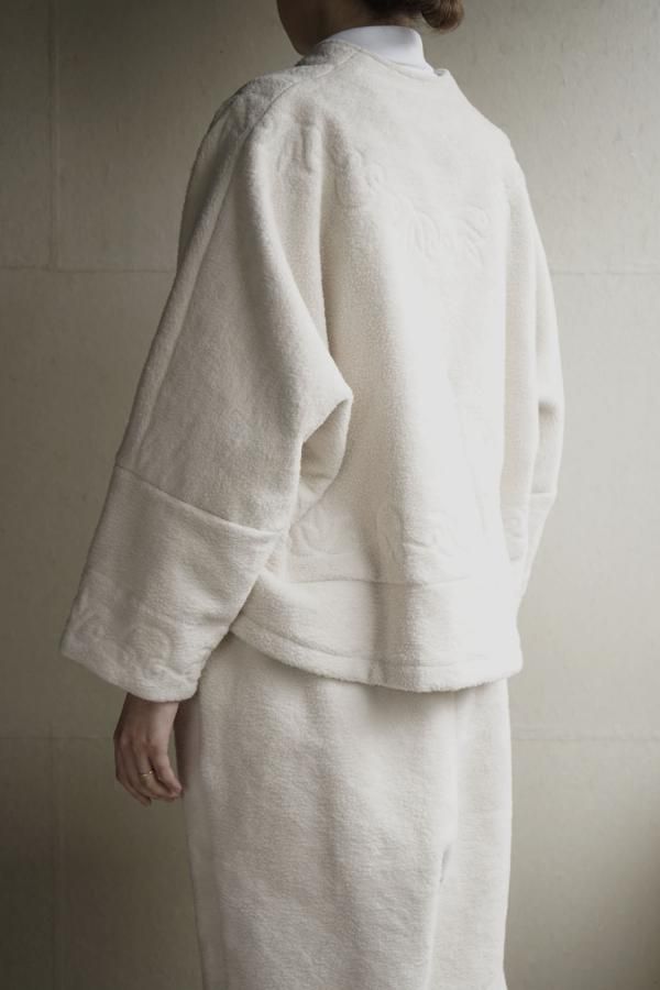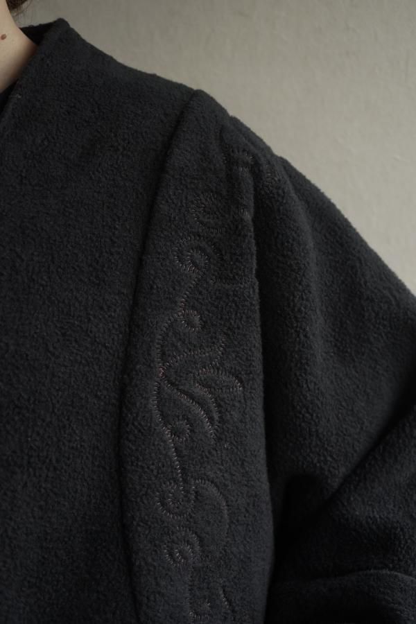素材にはコットンダブルクロスにナッピング起毛を施した生地を使っており、毛布を纏ったようなふっくらとした柔らかな手触りと保温性があり、比較的軽量に仕上がっています。