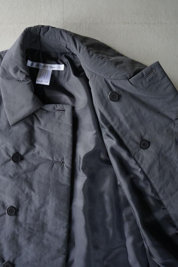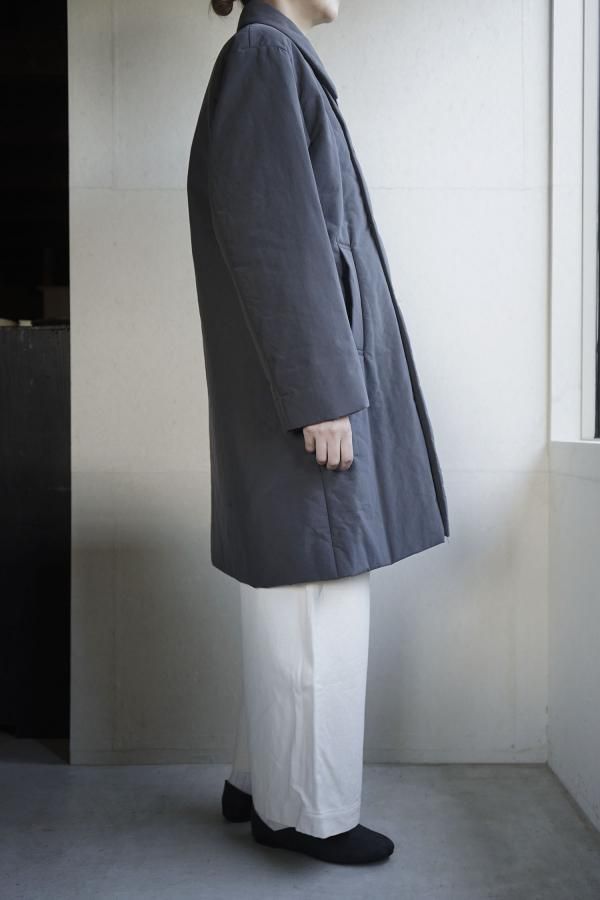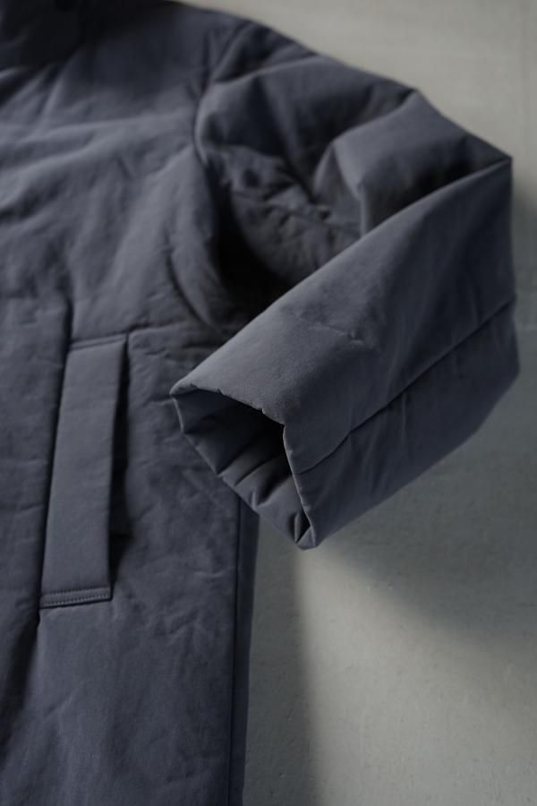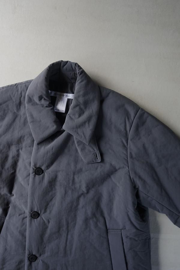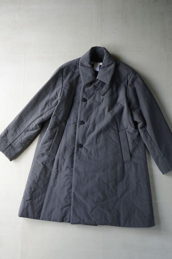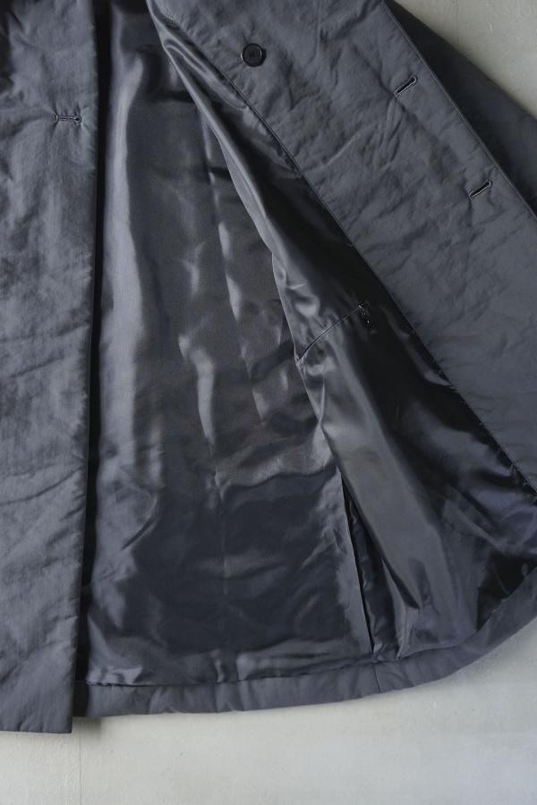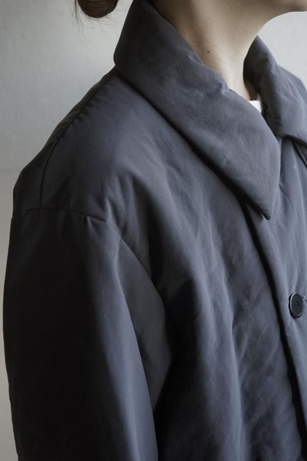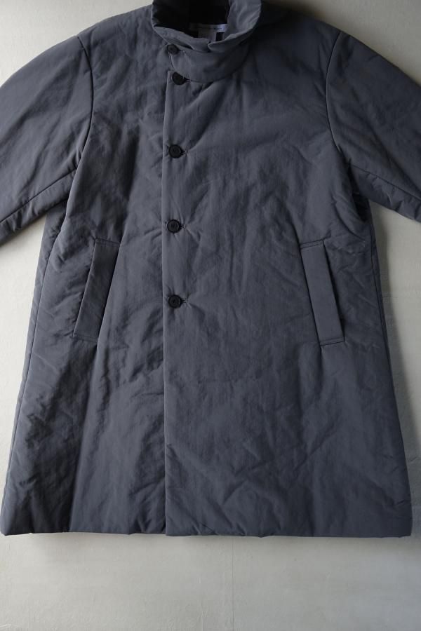 ナイロン生地に高機能中綿を加工した、とても軽量なステンカラーコート。