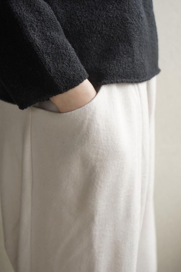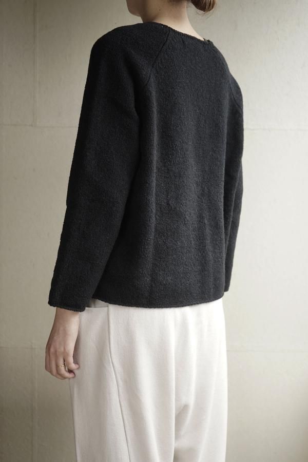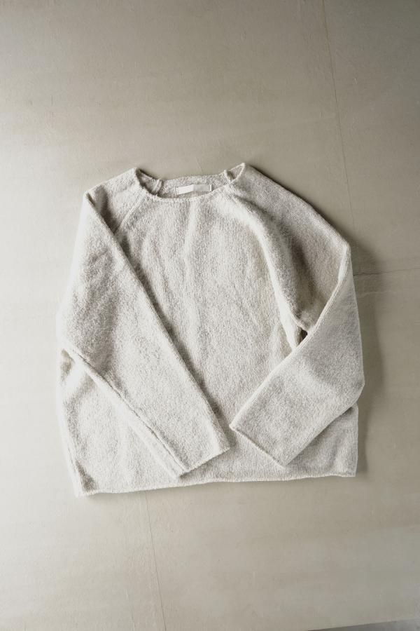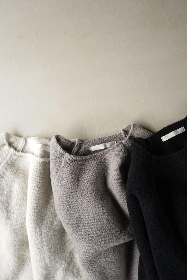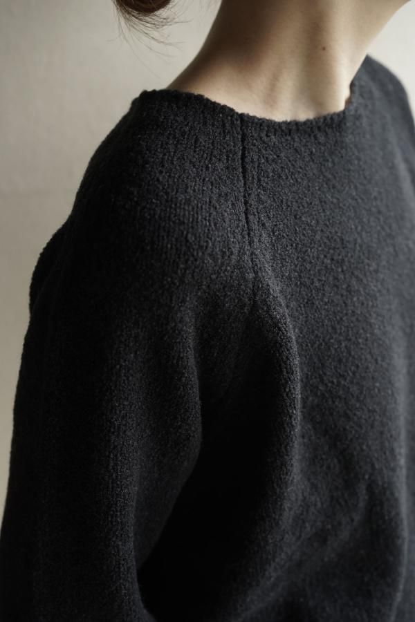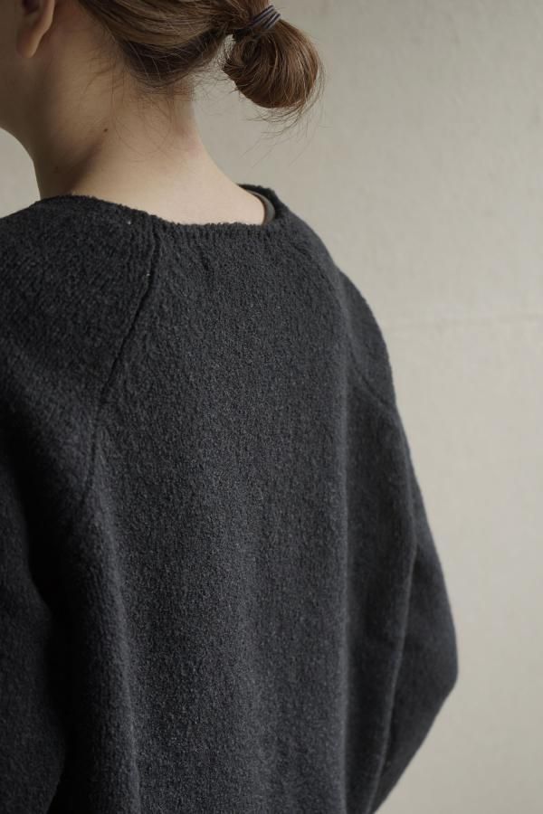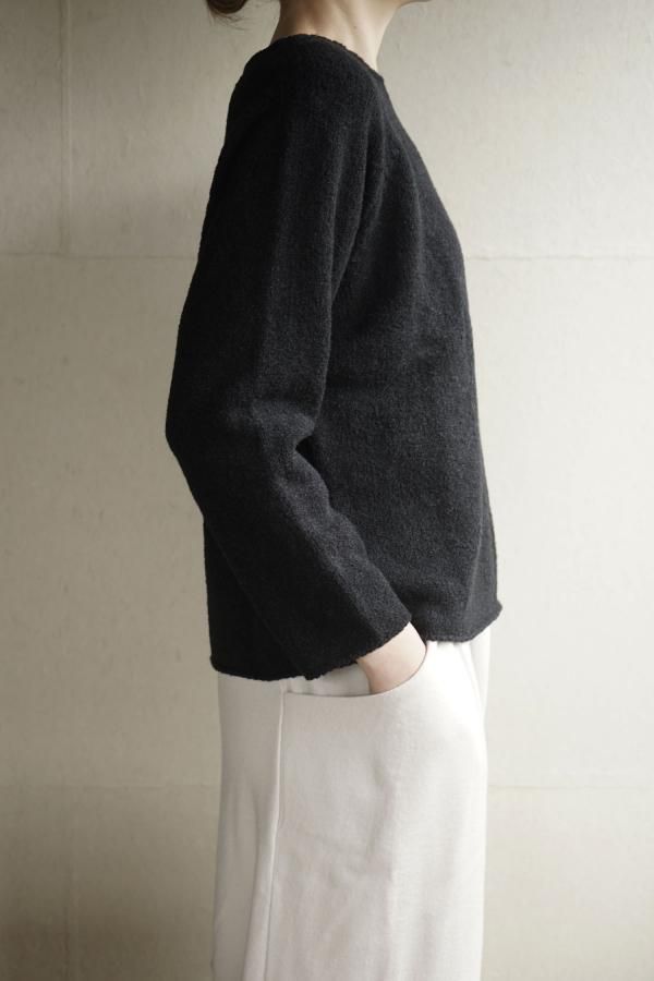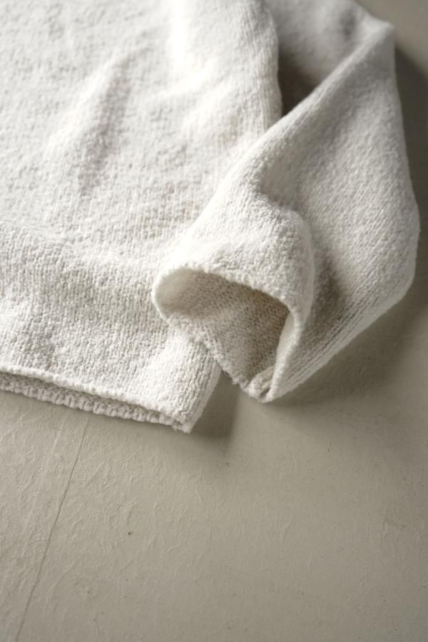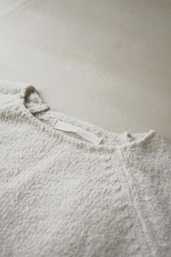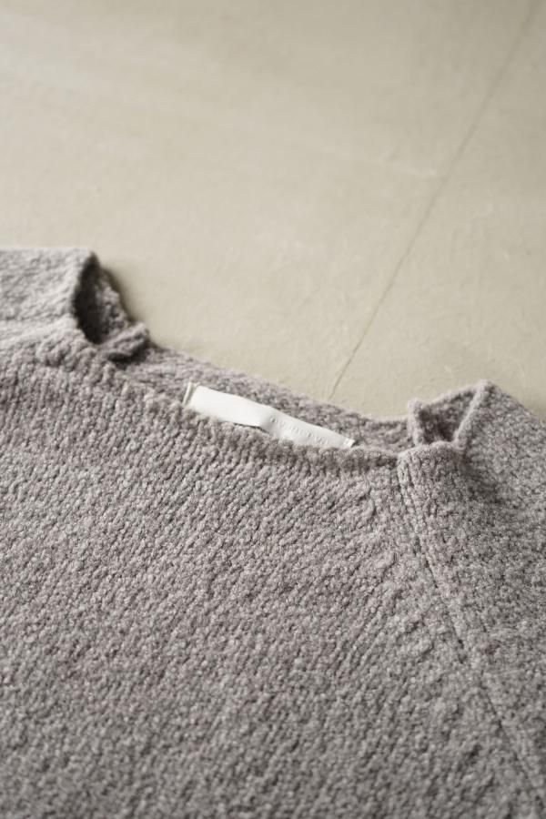 ウールの連続した細かいループ糸と組み合わせ、編地に密度がありながらもゆったりと仕立てられています。