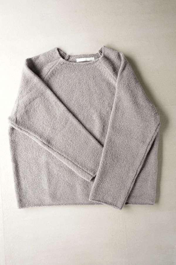 その端材を粉砕して綿に戻し、再び紡ぎ、糸にした「renew-wool」を使用したプルオーバーです。