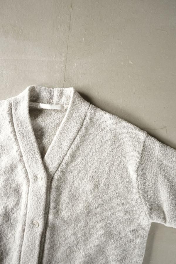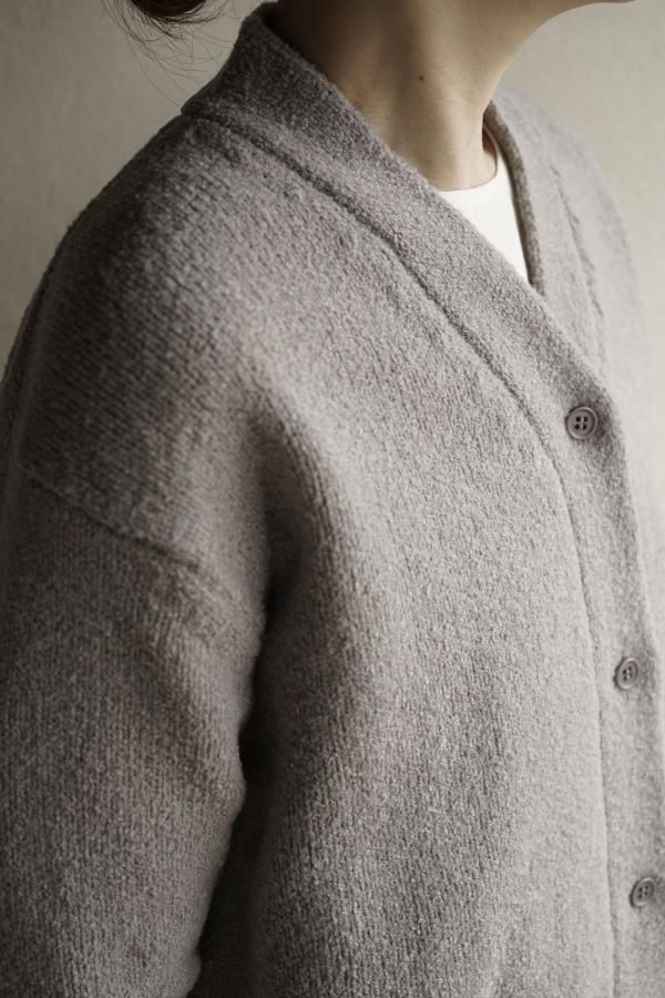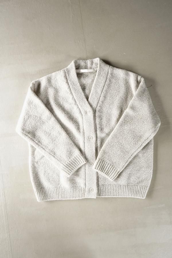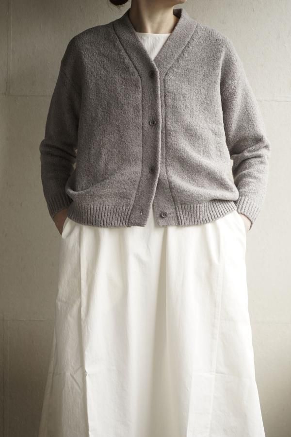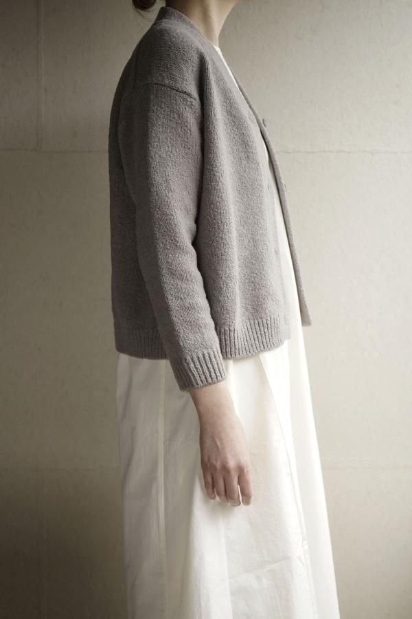 肩を落とした程良くゆったりとしたサイズ感で、使い勝手の良いシンプルなデザインのカーディガン。