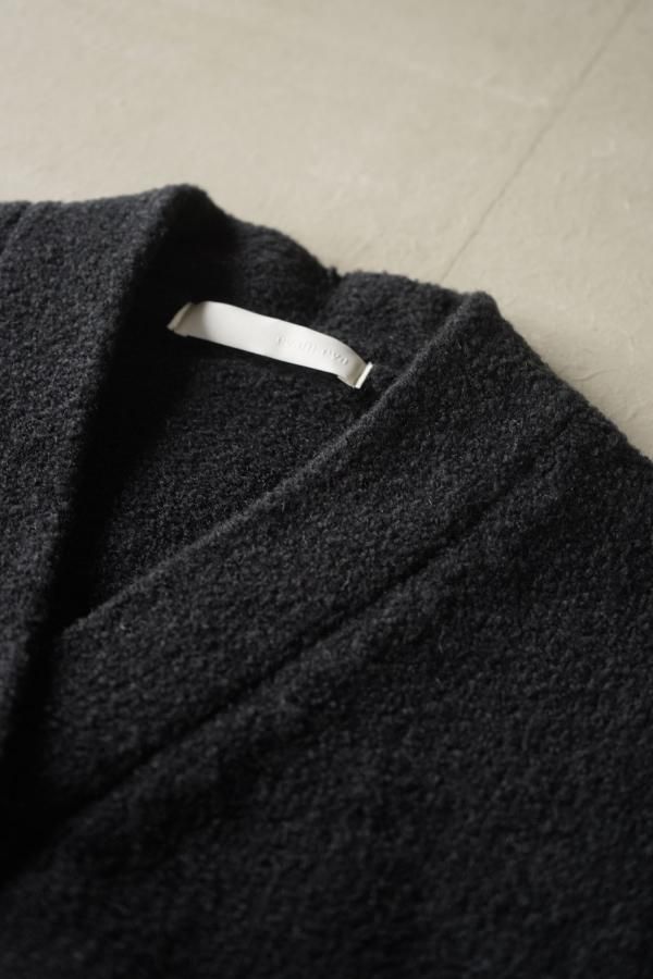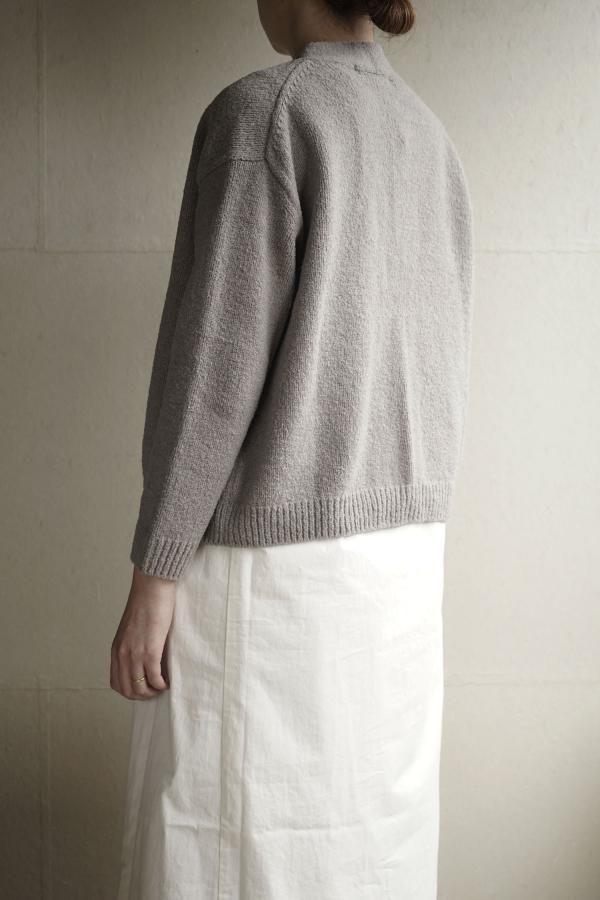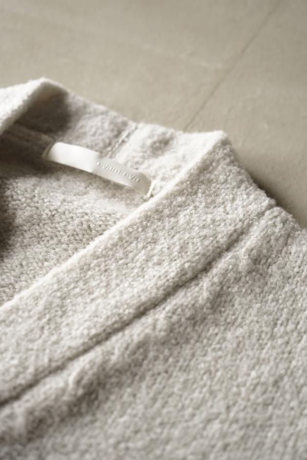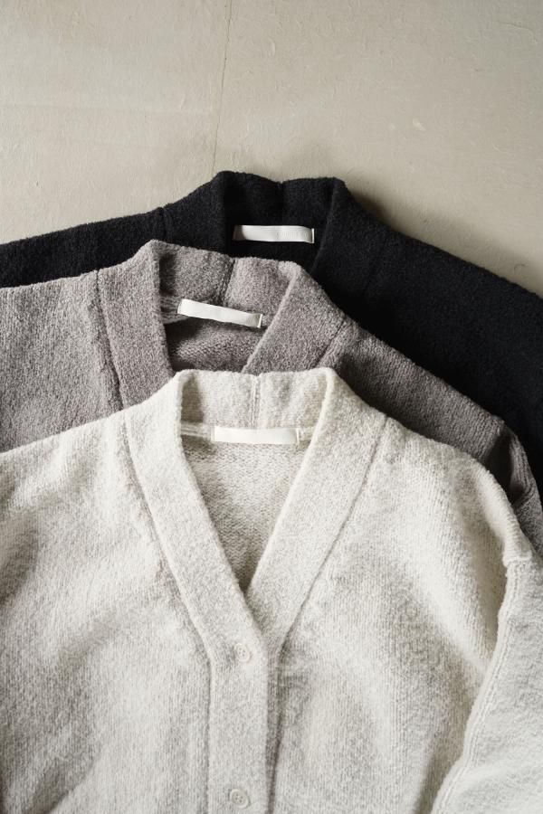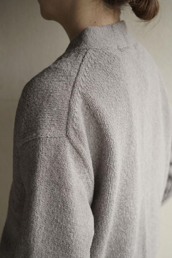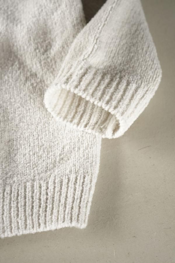 ウールの連続した細かいループ糸と組み合わせ、編地に密度がありながらもゆったりと仕立てられています。