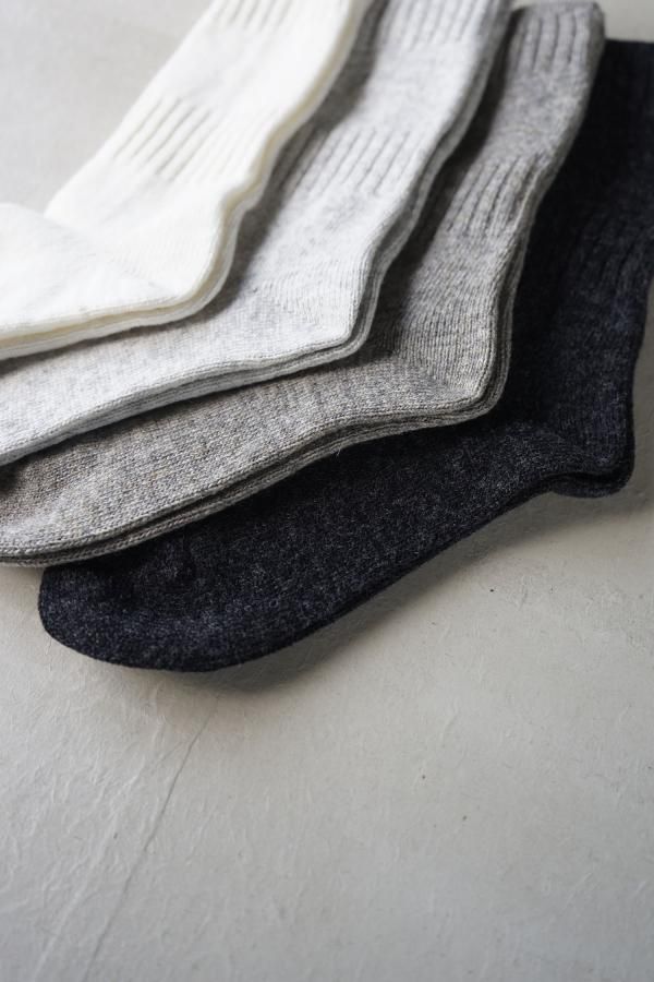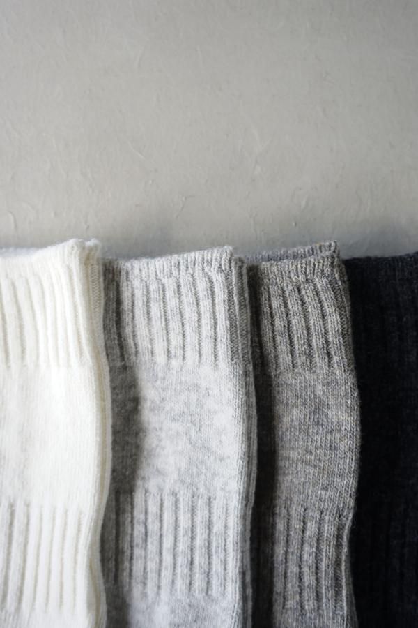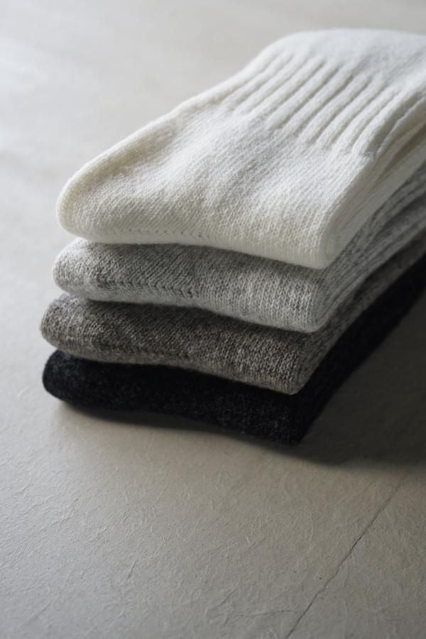 柔らかく軽やかなカシミヤ混の紡毛糸を使用した靴下。
