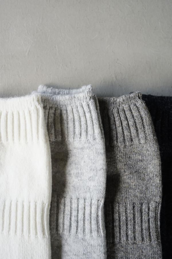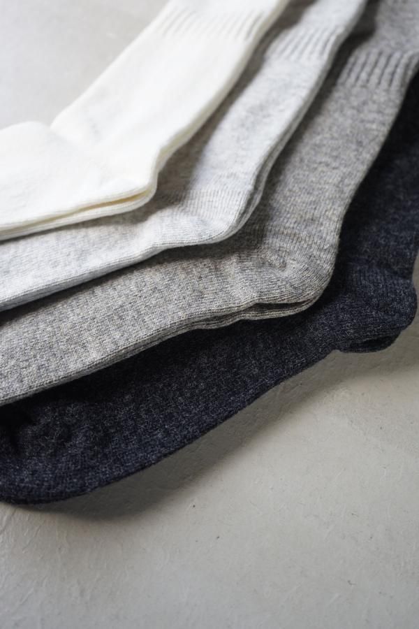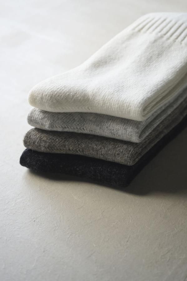 柔らかく軽やかなカシミヤ混の紡毛糸を使用した靴下。