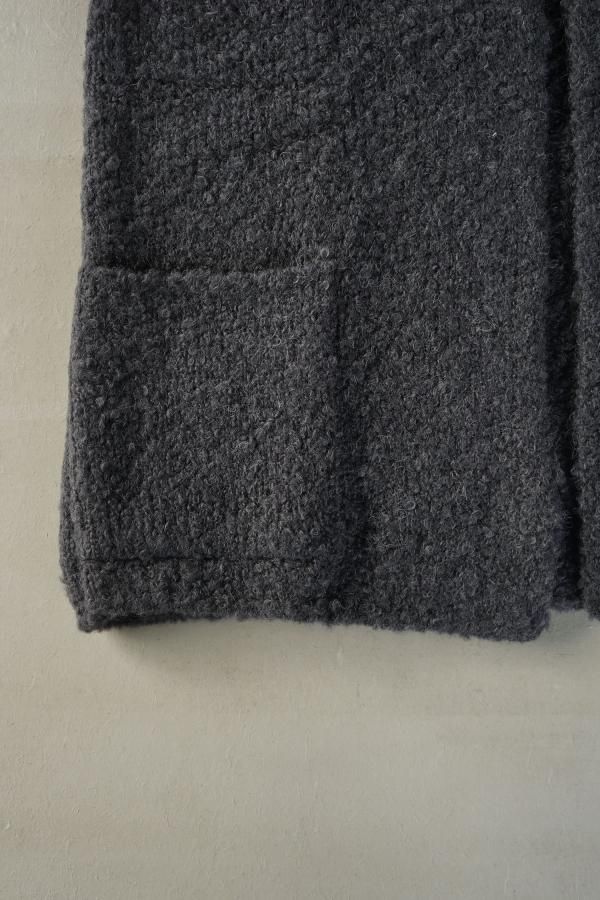 ボタンが無く、やや着丈の長さがあるすっきりとしたシルエット。