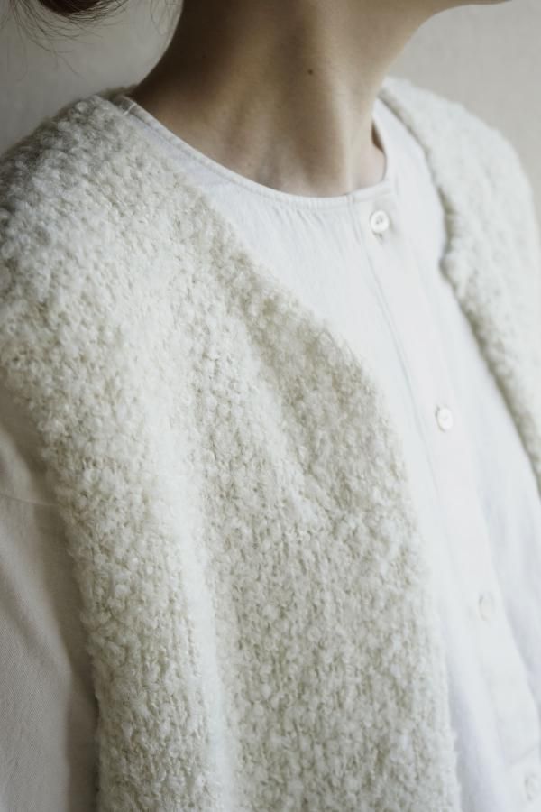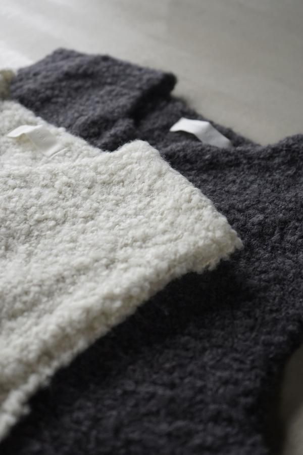 もこもことボリュームのあるふっくらとした素材は、シンプルな装いにも華やかさを添えてくれます。