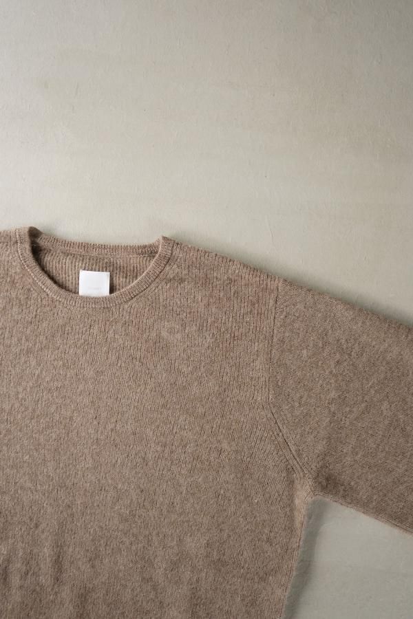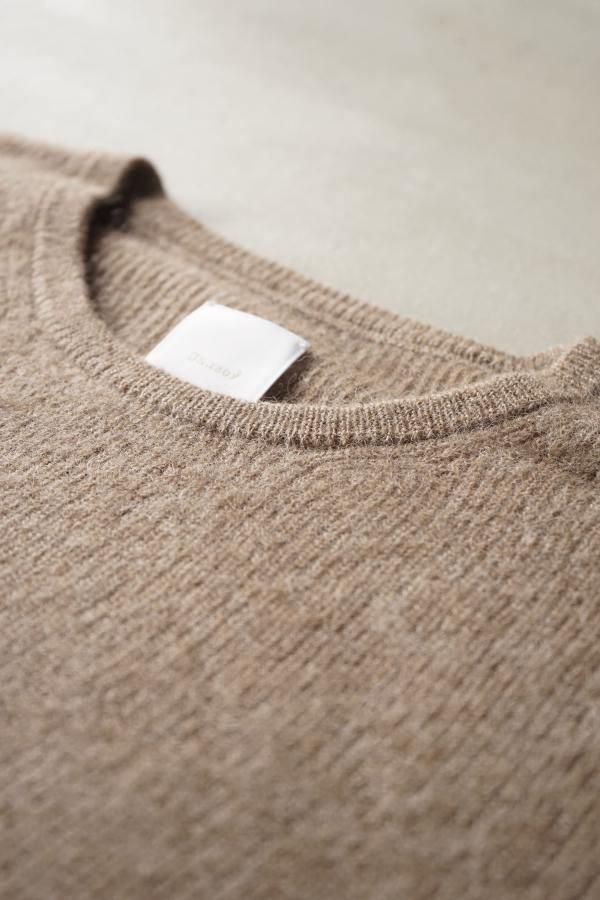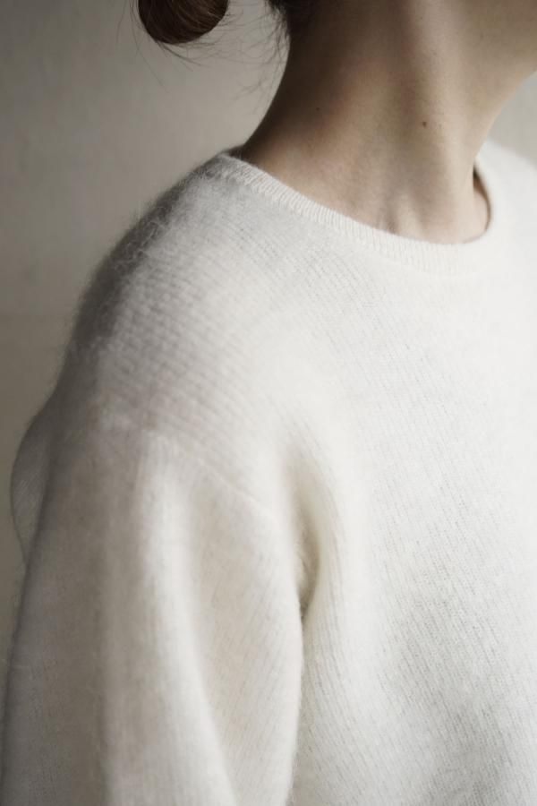 ベビーアルパカとメリノウールのブレンド糸を使用したニットプルオーバー。