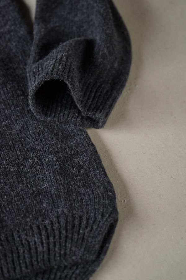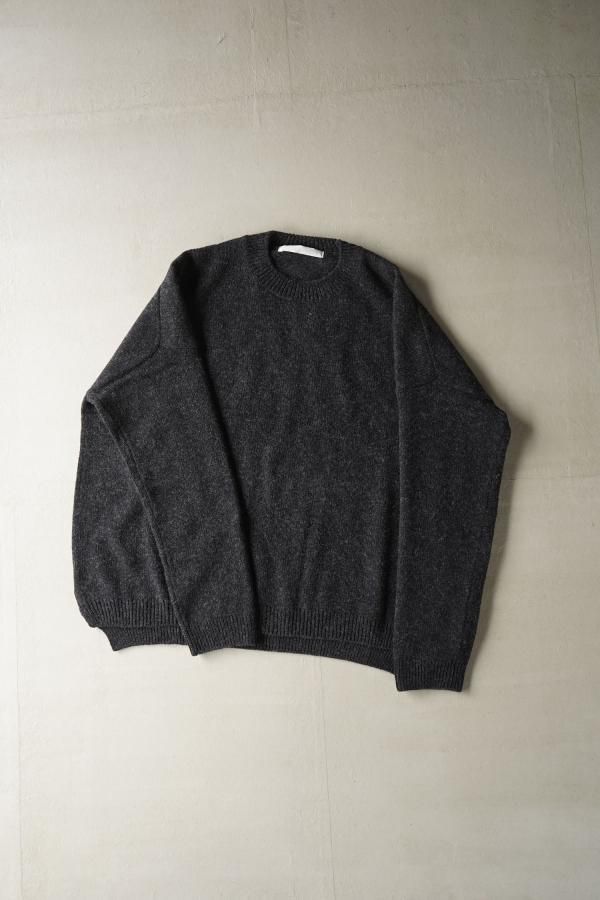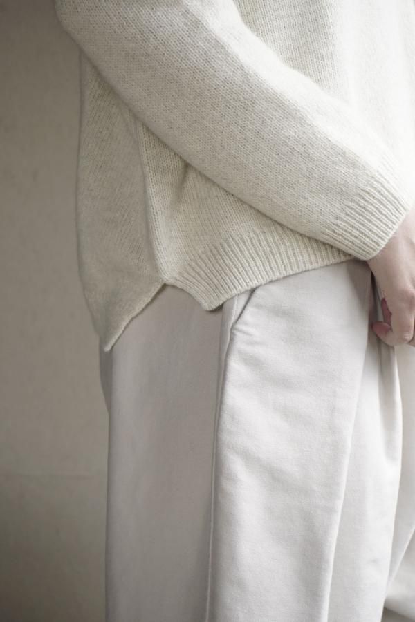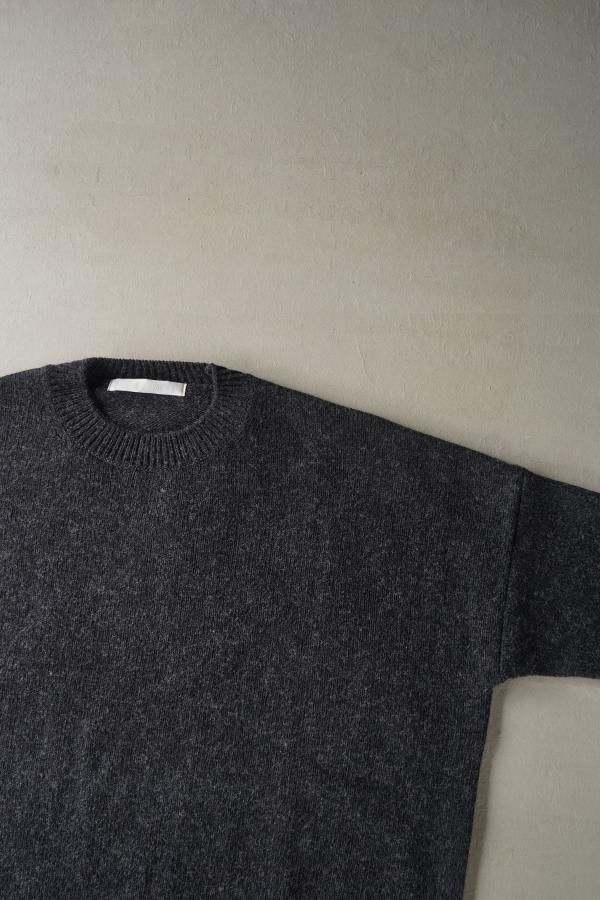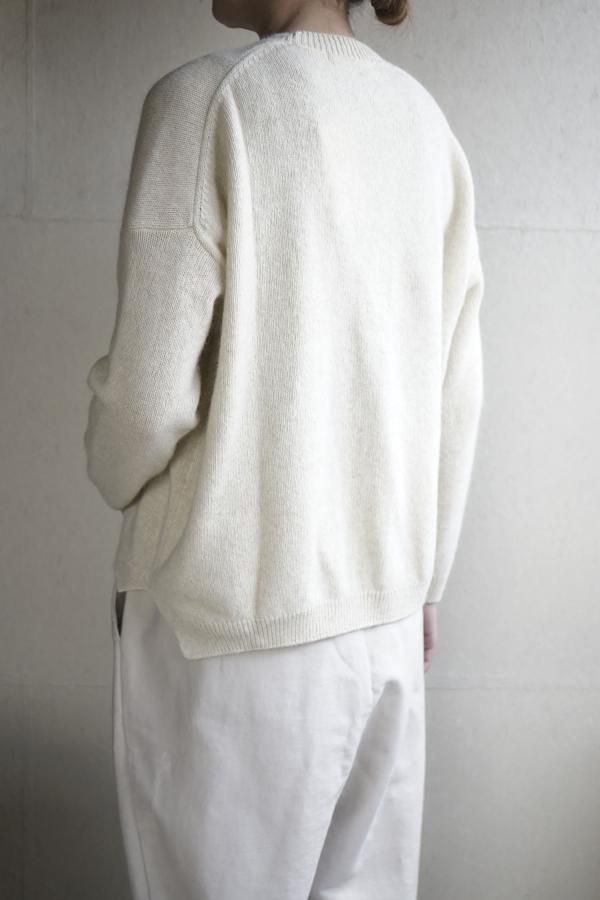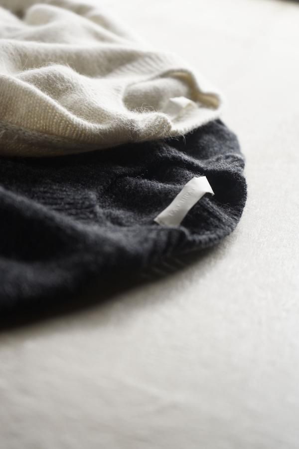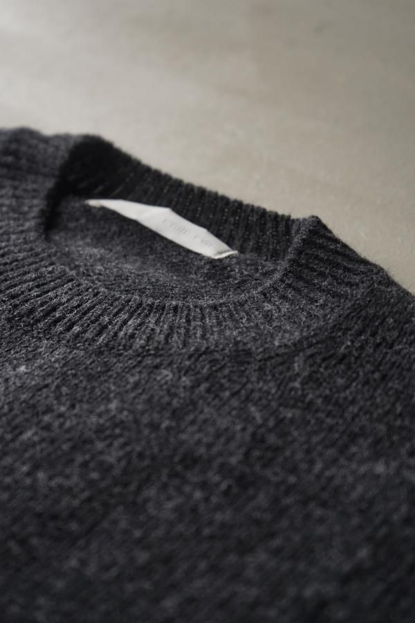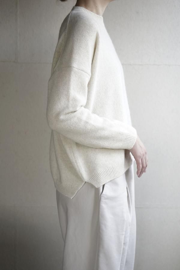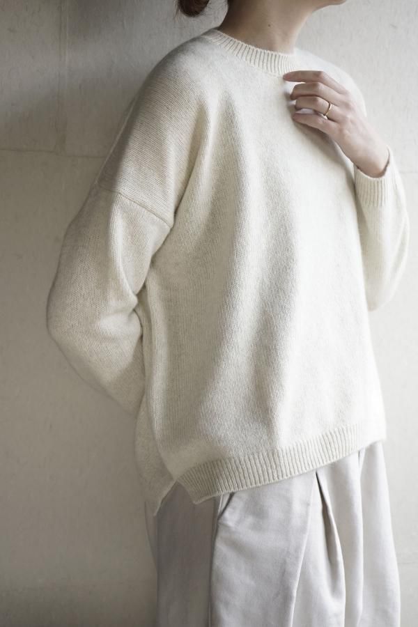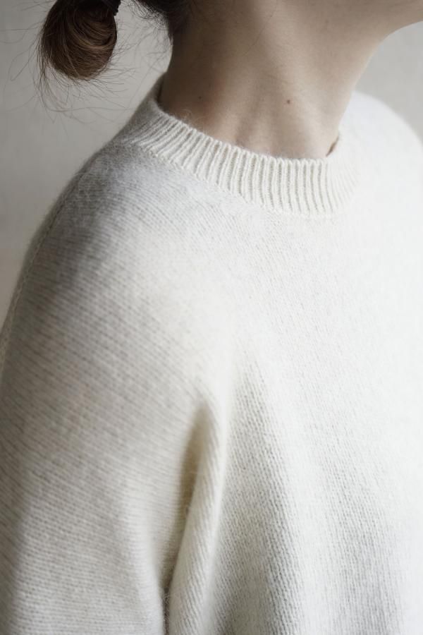 弾力のあるメリノウールと、ふんわりとした毛が特徴のブルーフォックスをブレンドした糸を使用したニットプルオーバー。