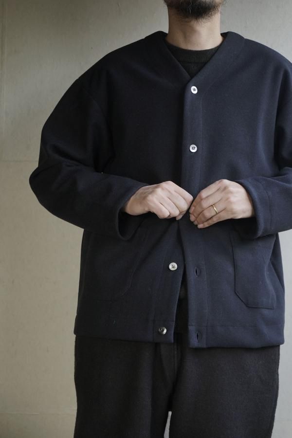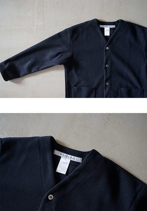 両面編みの生地の表面に微起毛加工を施した、滑らかな肌触りのカーディガン。