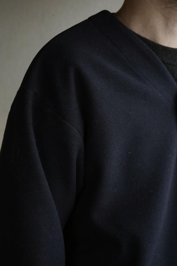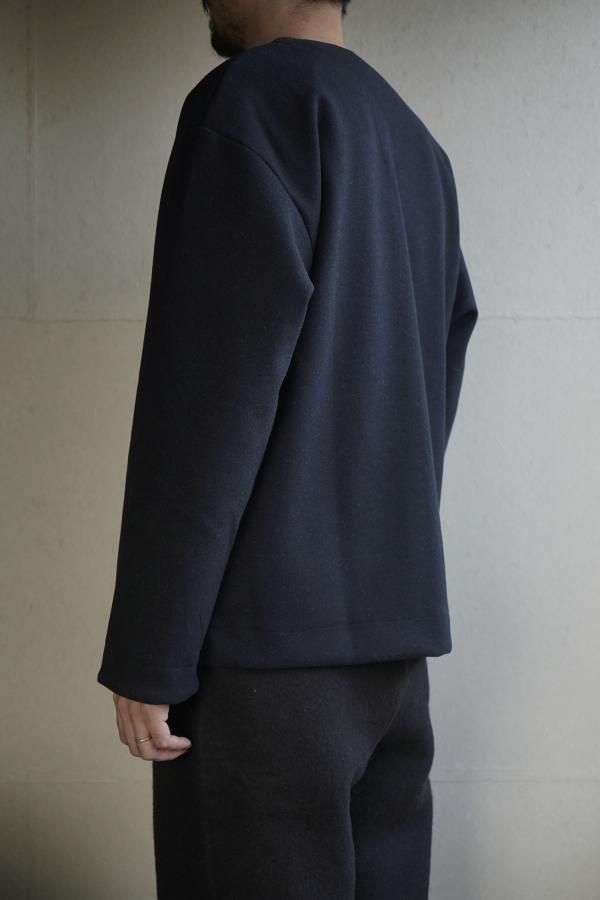 ポリエステルメインの素材ですが、ウールフェルトの様な暖かみのある生地感で、チクチク感が少なくニットが苦手な方にもお勧めです。