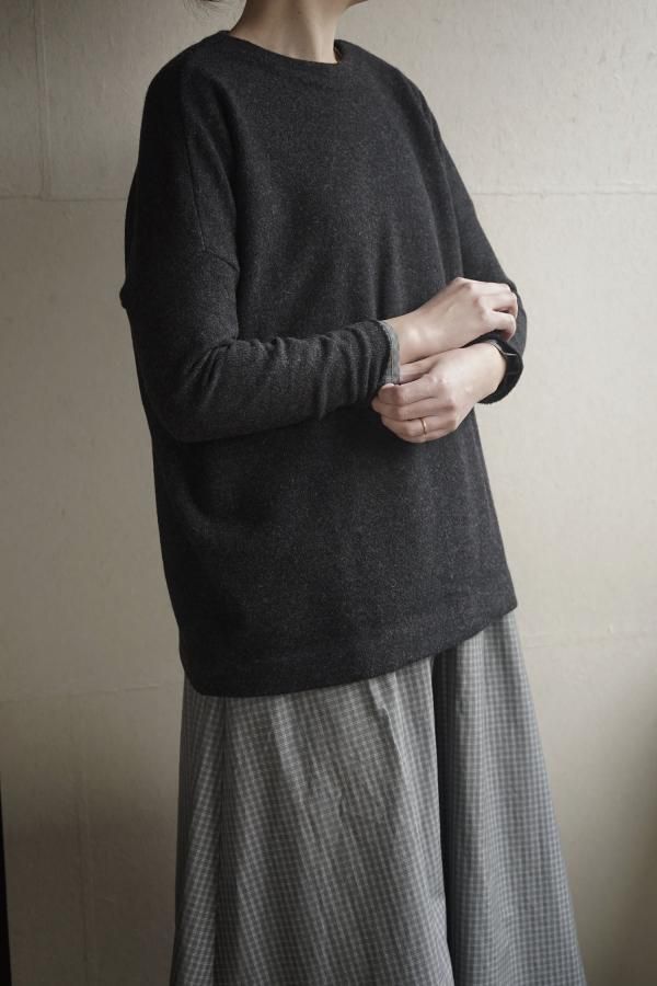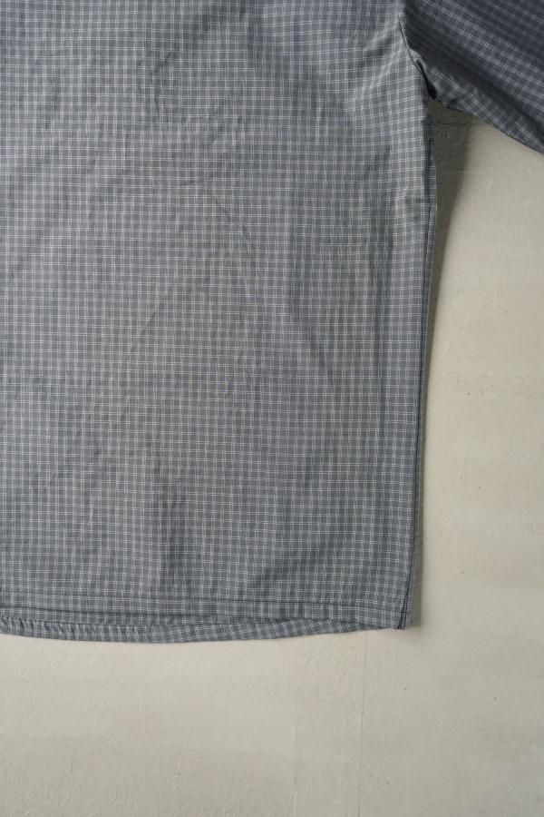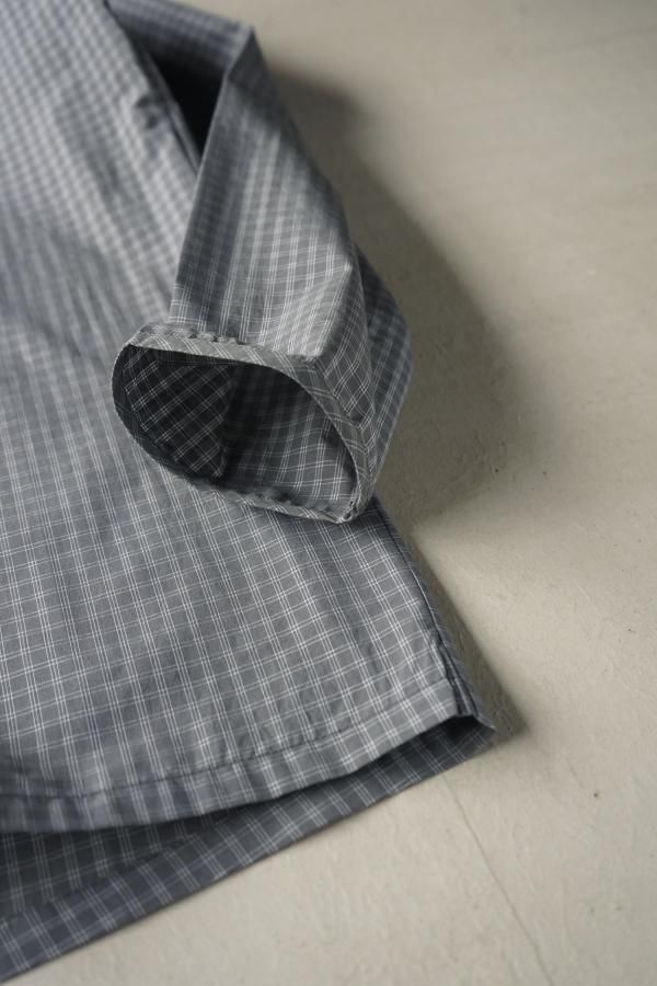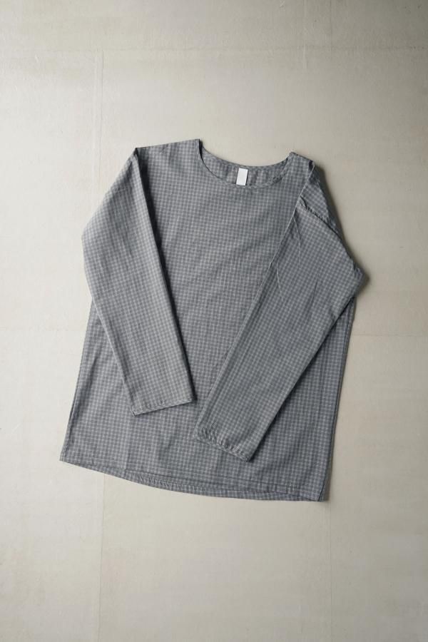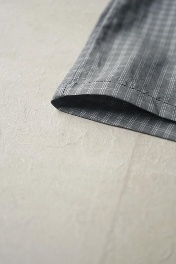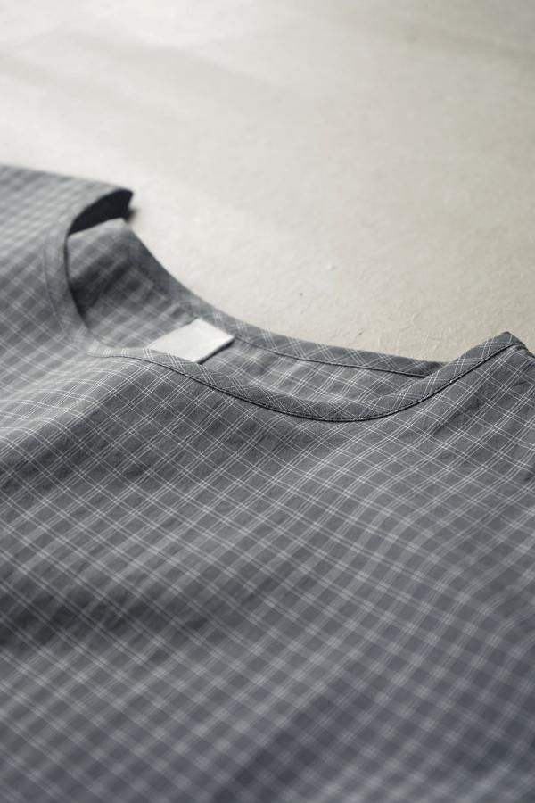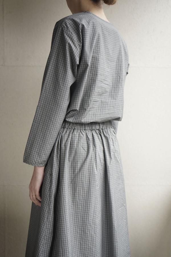 Charcoal×WhiteのYoliオリジナルパターンチェックを使ったブラウス。