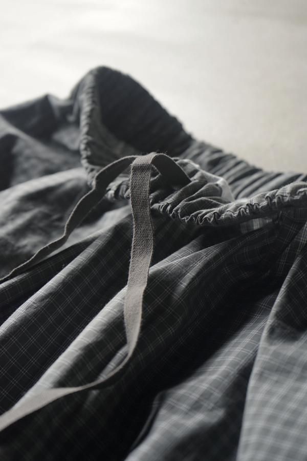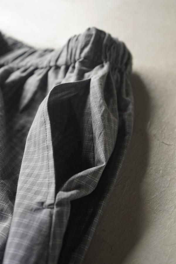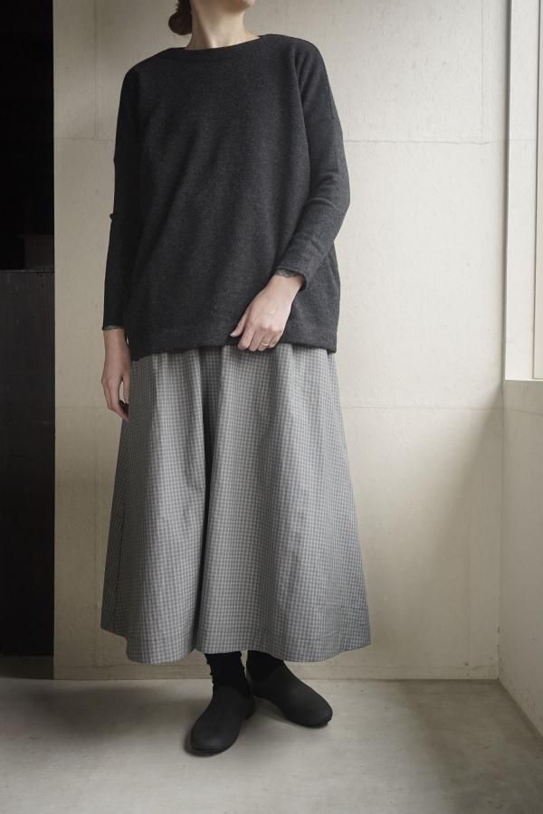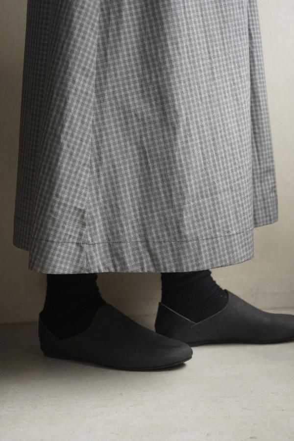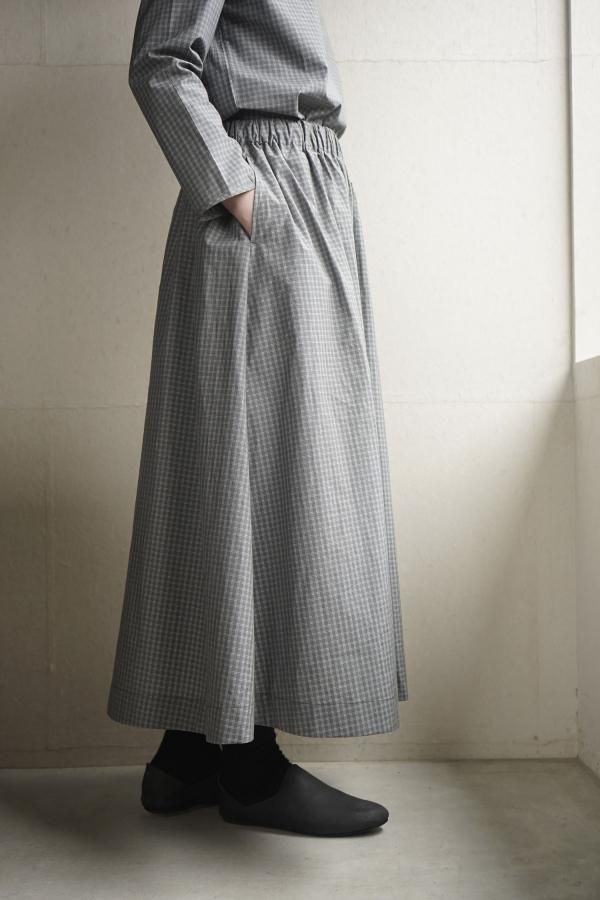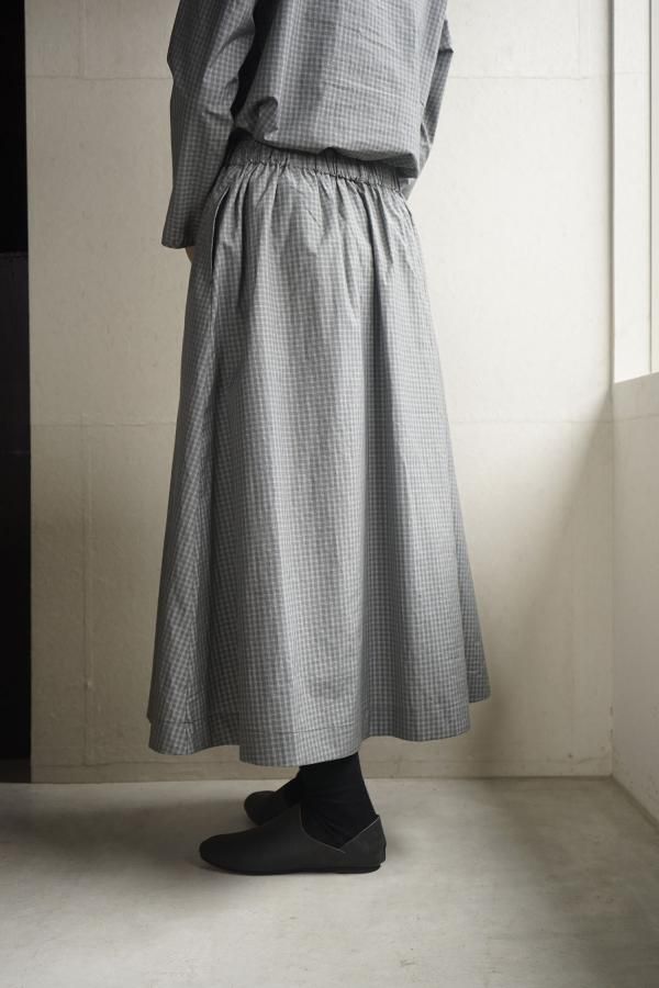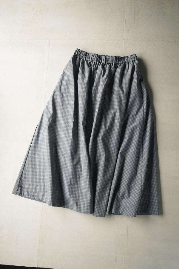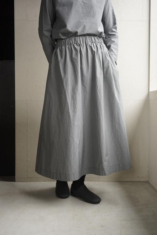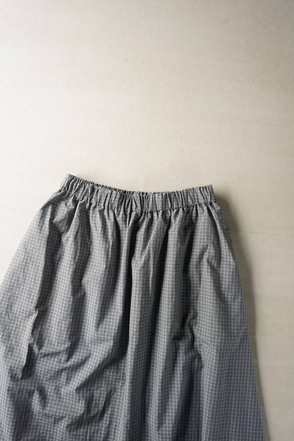 Charcoal×WhiteのYoliオリジナルパターンチェックを使ったギャザースカート。